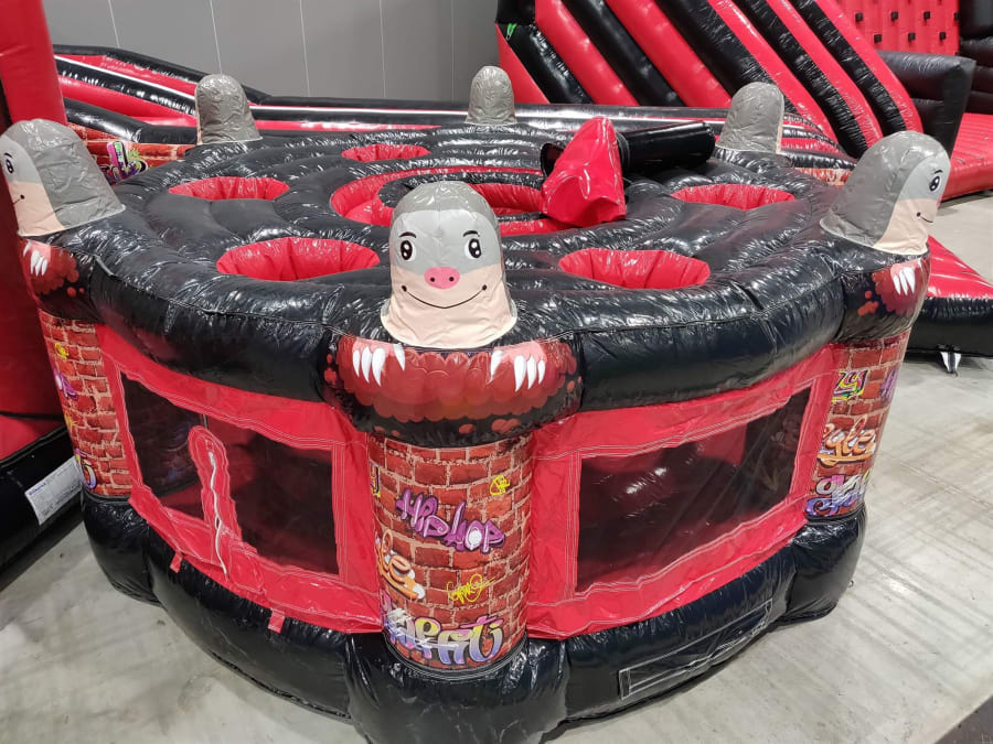 This is one of many new additions and is already popular across our range of events. This amazing attraction can be seen from afar yet still sensibly sized to fit inside most venues. The inflatable whack-a-mole for hire is suitable for both kids & adults alike and provides hours of entertainments across the board. The whack a mole for hire is fantastic fun and Just as much fun for spectators as it is for participants.