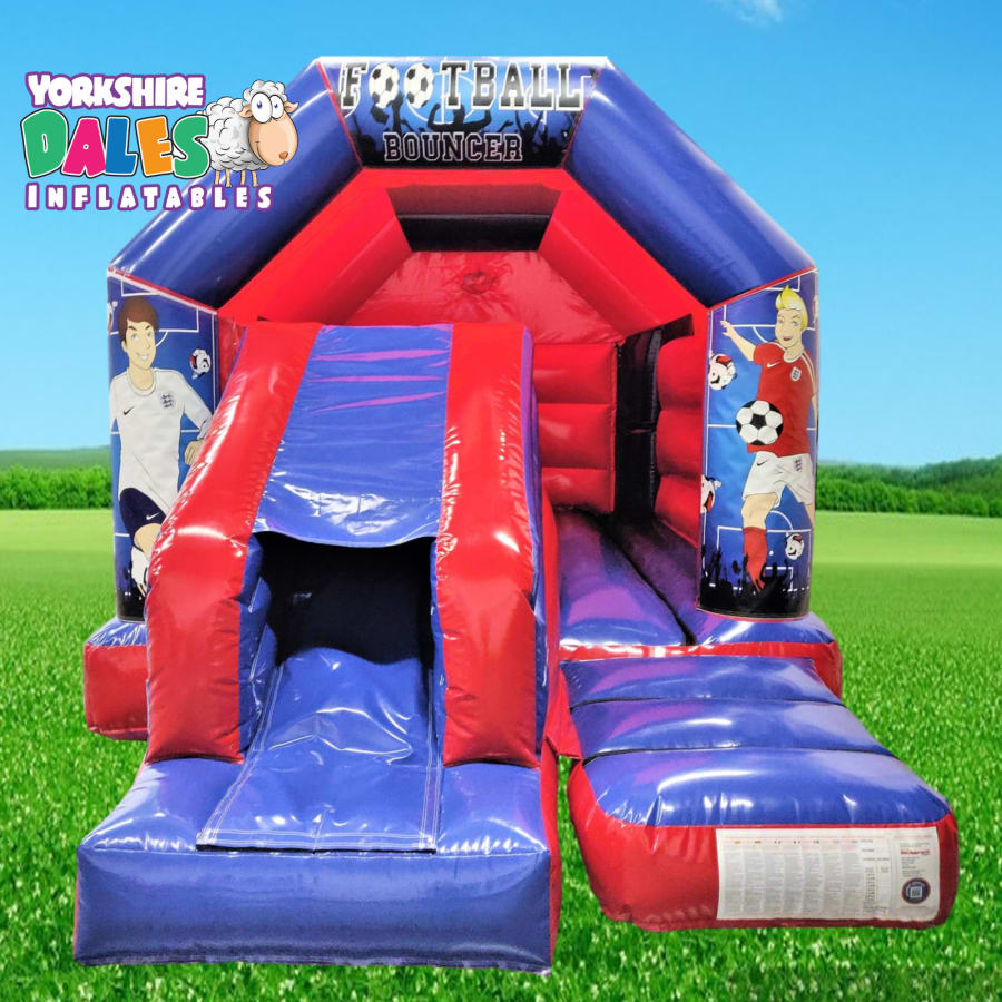 The additional slide is a laugh a minute and will have the children running round and round all day long. The addition of the slide also allows you to cater for a slightly larger number of visitors too making it ideal for most types of event. This red & blue themed bouncy castle with slide is a great all round inflatable for many occasions. Whether it is a 10th Birthday party for son or daughter, a christening at the local village hall or a rewards event for the local scouts and girl guides group then this is the perfect choice for you.