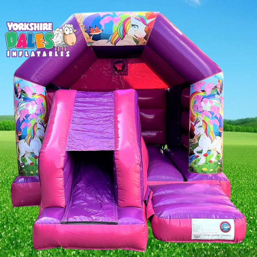 Unicorn Theme Pink & Purple Bouncy Castle With Slide - 11ft x 16ft