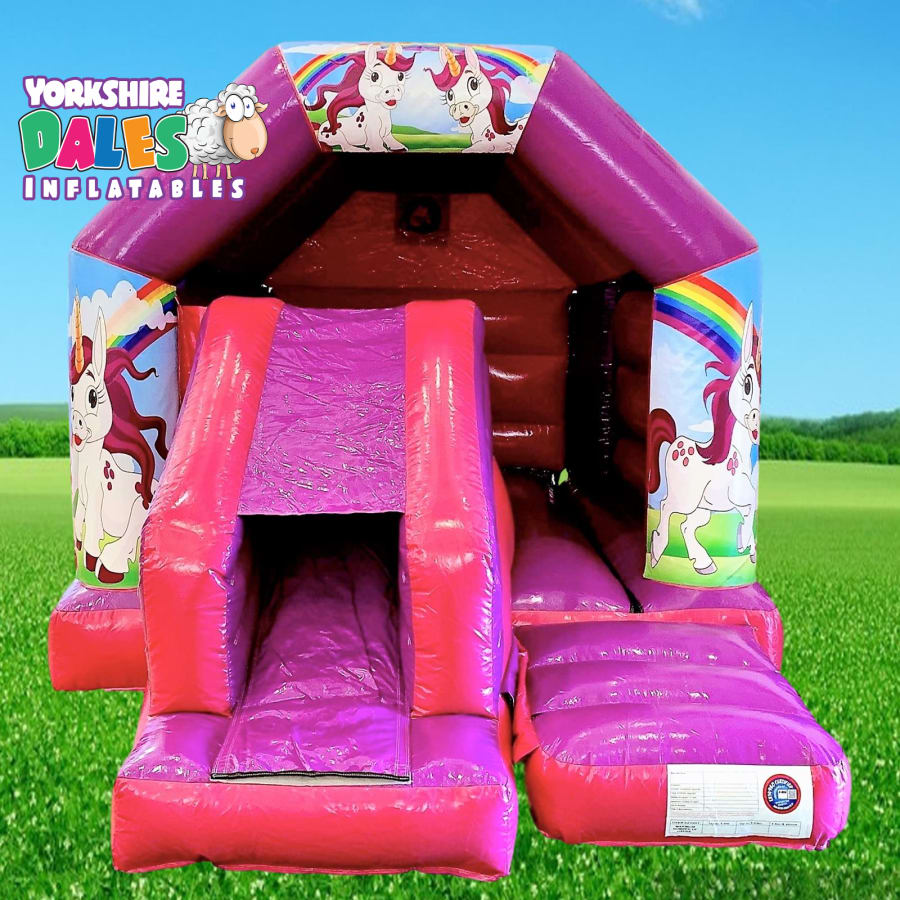 Unicorn Theme Pink & Purple Bouncy Castle With Slide - 11ft x 16ft
