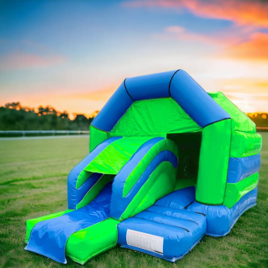 Whether you're hosting an event in Harrogate, York, Leeds, or anywhere across the UK, the 12x16 Bouncy Castle Slide Combo in Plain Green & Blue from FunBounce Entertainments is your ticket to an event filled with laughter, excitement, and memorable moments. Get ready to slide into fun and bounce to the rhythm of joy with this vibrant and versatile entertainment option!