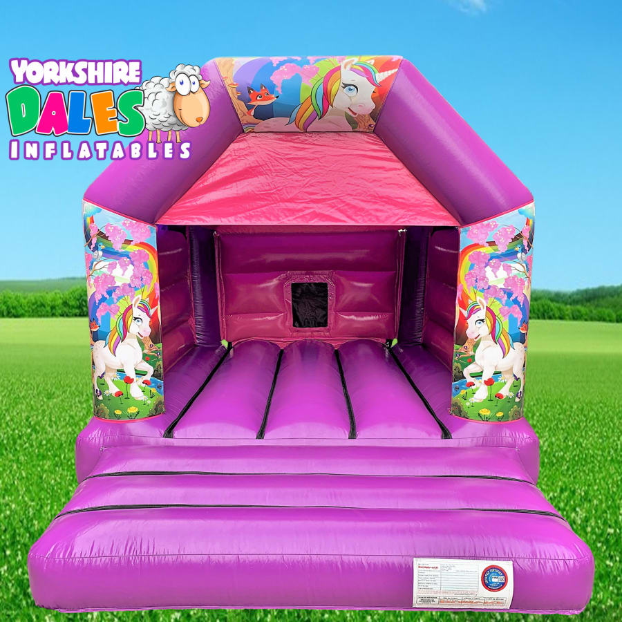 Our Pink & Purple 11x15ft themed bouncy castle is the perfect choice for those looking for something larger than our Toddler bouncy castles for hire for your special day. The Pink & Purple themed bouncy castle is a great all round inflatable for many occasions. Whether it is a 10th Birthday party for son or daughter, a christening at the local village hall or a rewards event for the local scouts and girl guides group then this is the perfect choice for you.