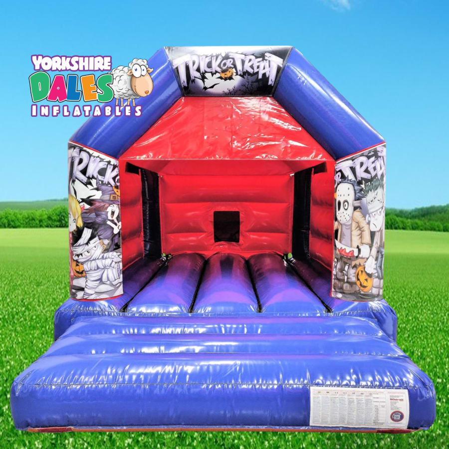 In summary, if you're searching for a safe, durable, and exciting addition to your Halloween party or event, then the red and blue Halloween Trick or Treat themed bouncy castle rental from Yorkshire Dales Inflatables is an excellent choice. Contact us today to book your bouncy castle rental and let the Halloween fun begin!