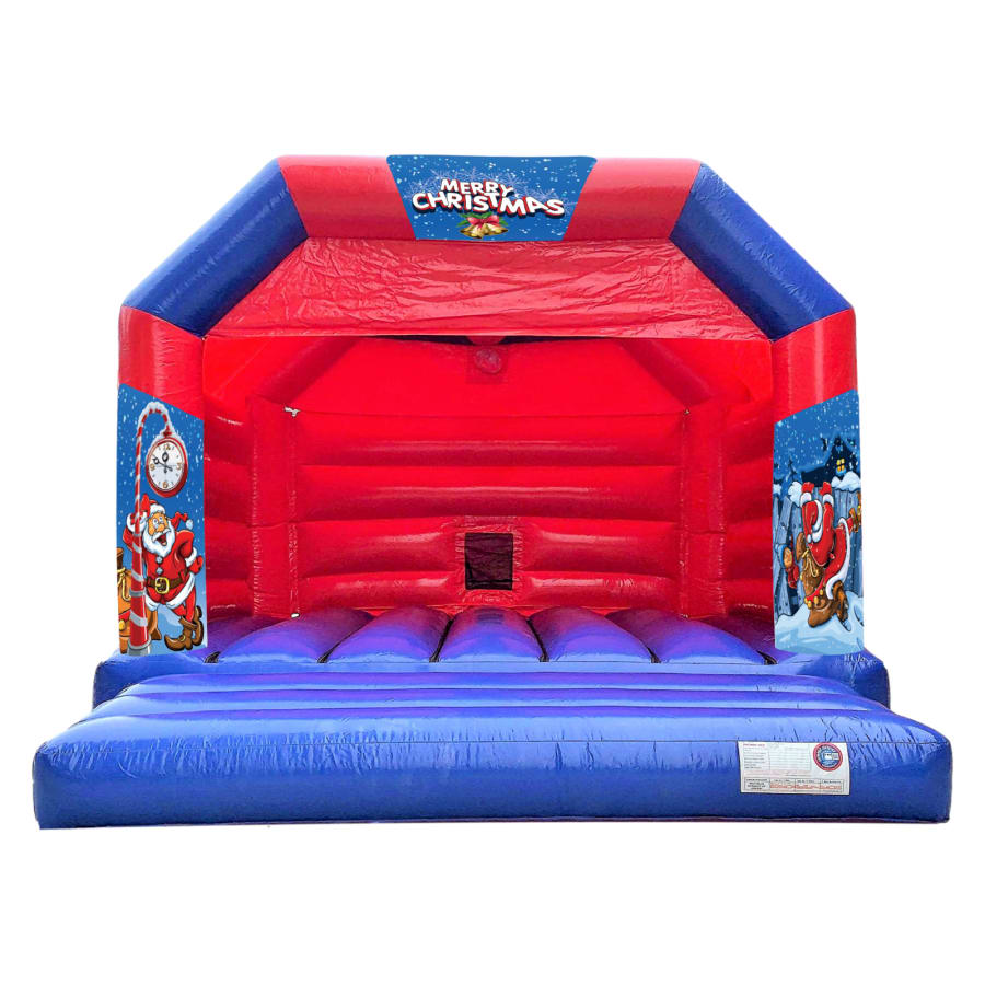 Christmas - Santa & Clock Theme Bouncy Castle - Red & Blue