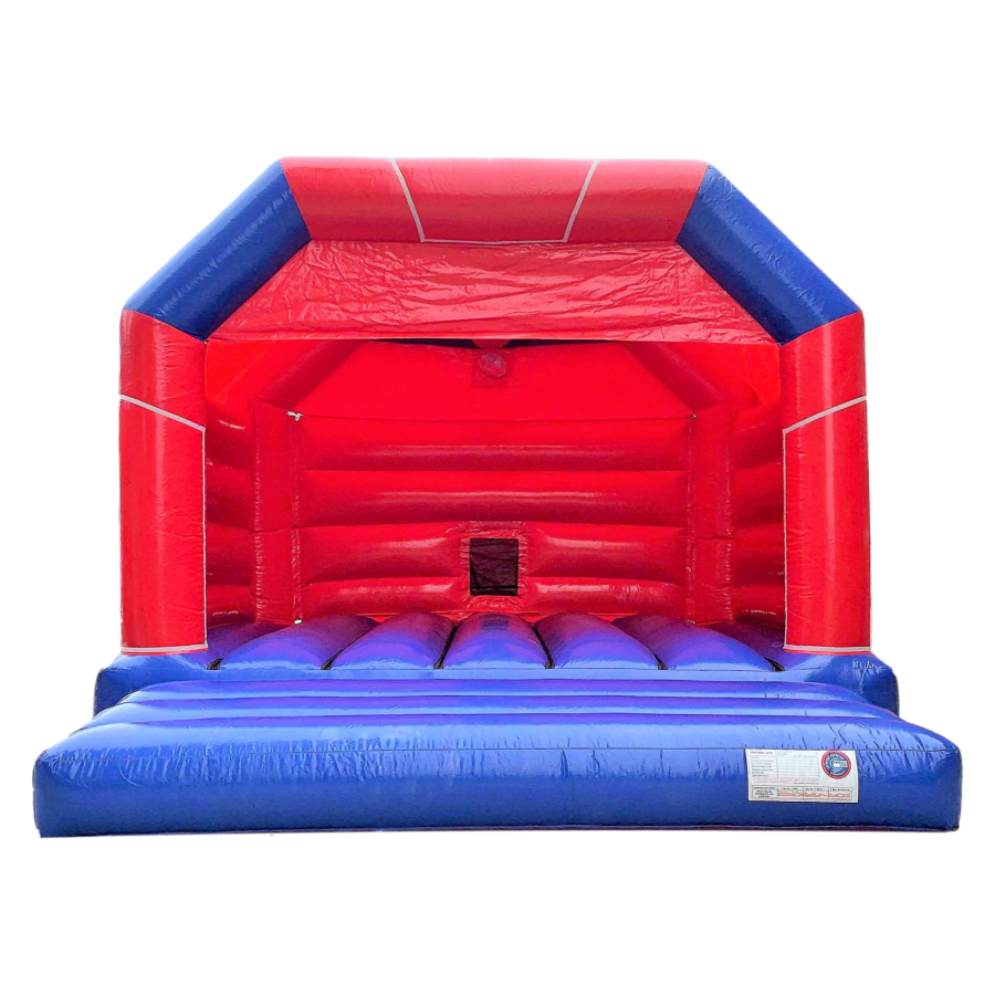 This large red & blue 15x15 is perfectly suitable for Adult parties, Licensed premises, Nightclubs, Pubs, Clubs, Gala, Concerts, Large events yet still suitable for children’s events too. It’s large enough to impress the older kids, yet sensible enough not to frighten off the smaller ones either. The adult bouncy castle hire is a cracking all round inflatable for many occasions. Whether it is a 40th Birthday bash for mum and dad, a special birthday party for your son or daughter, a rewards event for the local scouts and girl guides group or a Collage/ University summer ball, then this is the perfect choice for you.