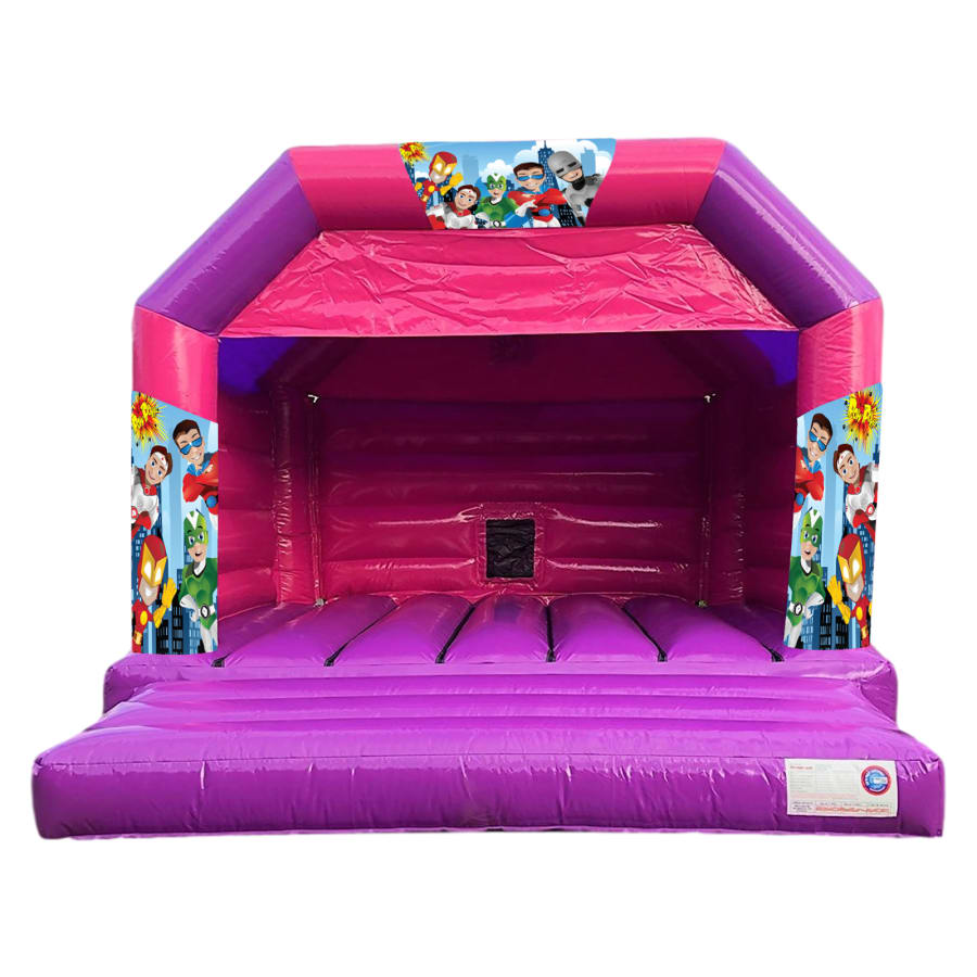 This large Pink & Purple 15x15 is perfectly suitable for Adult parties, Licensed premises, Nightclubs, Pubs, Clubs, Gala, Concerts, Large events yet still suitable for children’s events too. It’s large enough to impress the older kids, yet sensible enough not to frighten off the smaller ones either. The adult bouncy castle hire is a cracking all round inflatable for many occasions. Whether it is a 40th Birthday bash for mum and dad, a special birthday party for your son or daughter, a rewards event for the local scouts and girl guides group or a Collage/ University summer ball, then this is the perfect choice for you.