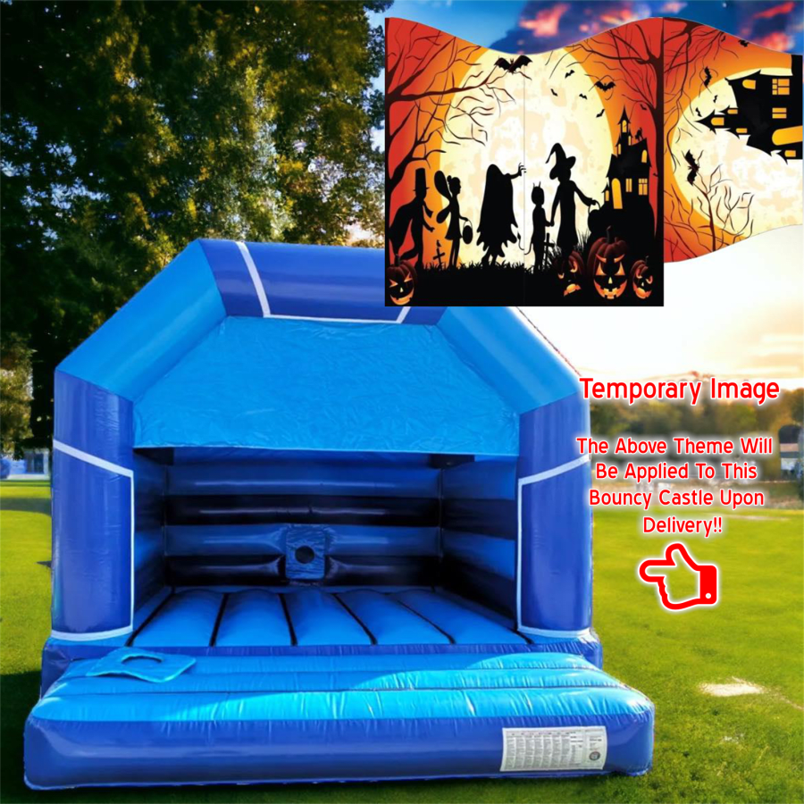 Blue & Light Blue Adult Bouncy Castle Hire - Halloween Silhouette Theme For Hire in Leeds, Wakefield, Bradford, Huddersfield, Halifax, York, Sheffield & Nationwide
