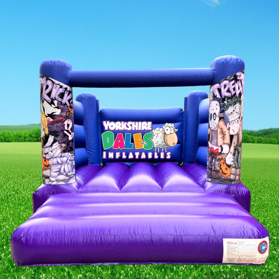Halloween Trick or Treat Theme Blue & Purple Low Height Bouncy Castle - 11ft x 15ft