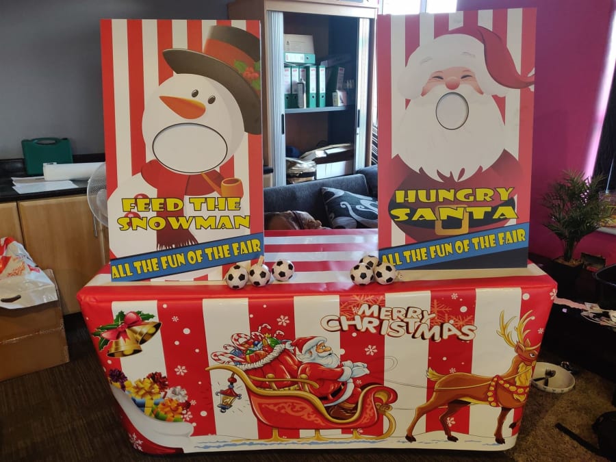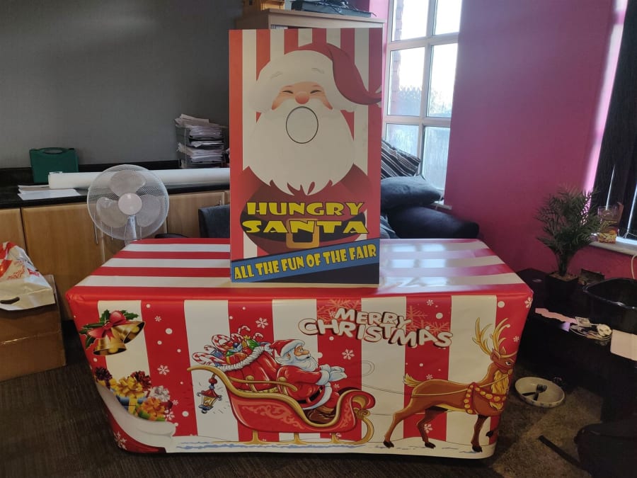 The Christmas stall boards for hire is a cracking way to draw in additional visitors to your exhibition stand, school gala, pub, club, shopping centre or can be just as much fun at a private party event or birthday bash and is guaranteed to attract large crowds and is just as much fun for the spectators, making the christmas game for hire ideal for fundraiser events as a pay and play item. Its also suitable for both kids and adults alike and is very popular hire for all ages and is suitable for indoor and outdoor venues of all kinds providing the flooring is suitable.