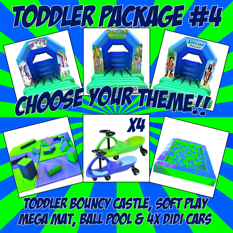 What do you provide with your Green & Blue Toddler Soft Play Party Package 4?