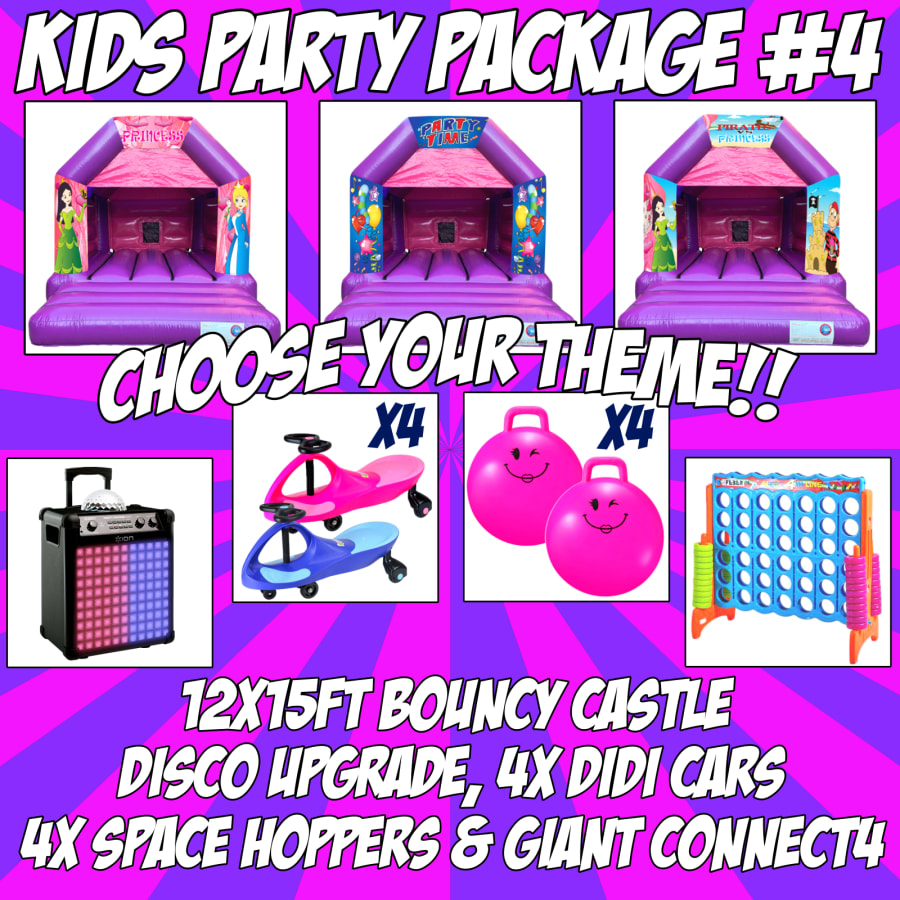 What do you provide with your Kids Pink & Purple Party Package 4?